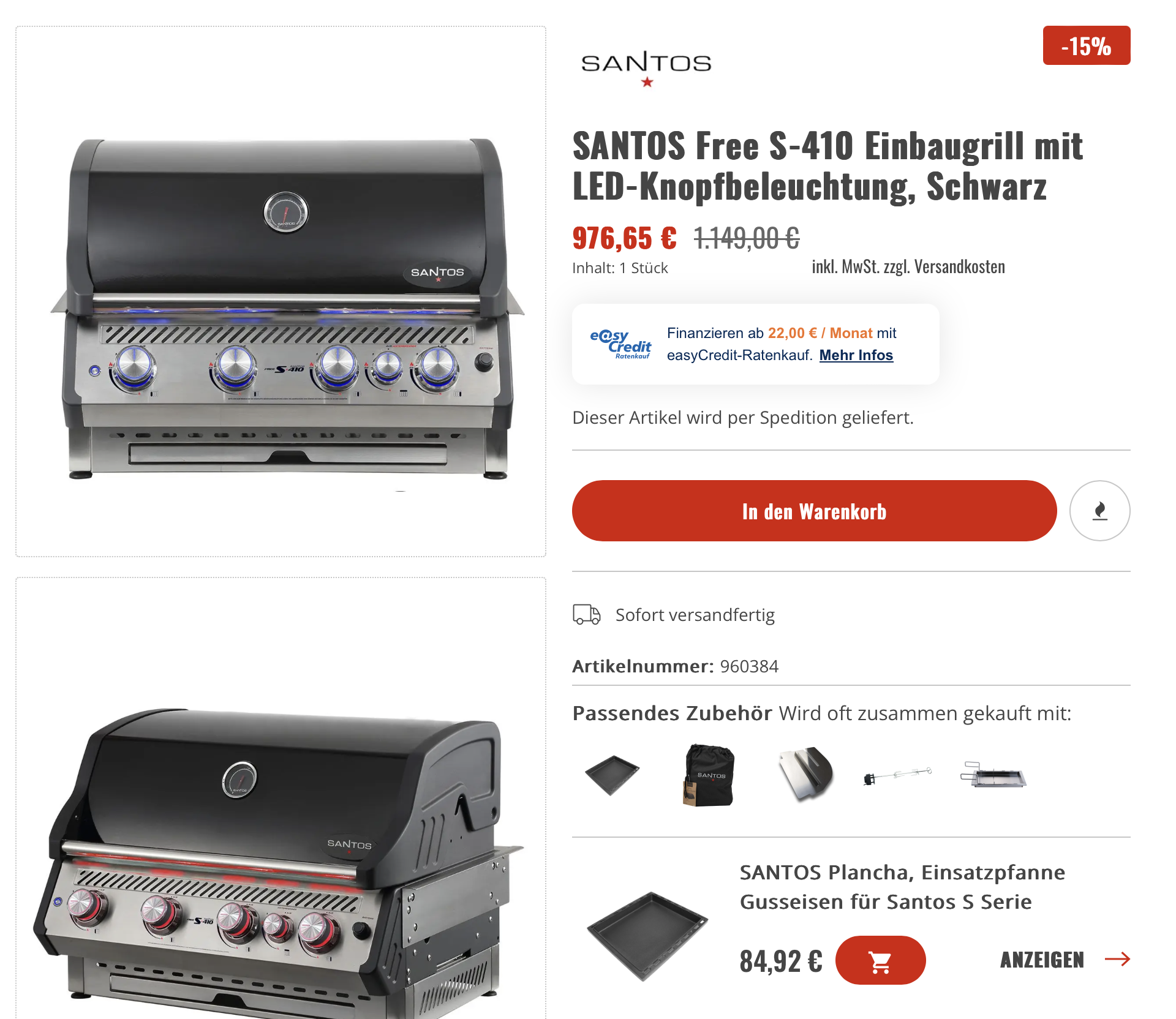 Santos Grills, gegründet 2005, ist einer der weltweit größten Grillfachhändler. Im Kölner Showroom gibt es über 400 Grillgeräte und 3.000 Zubehörartikel. Santos bietet eine eigene Grillmarke, zahlreiche Grillseminare, und umfassende Dienstleistungen wie Beratung, Lieferung, Aufbau und Reparatur. Der Onlineshop versendet schnell europaweit und bietet erstklassigen Kundenservice.